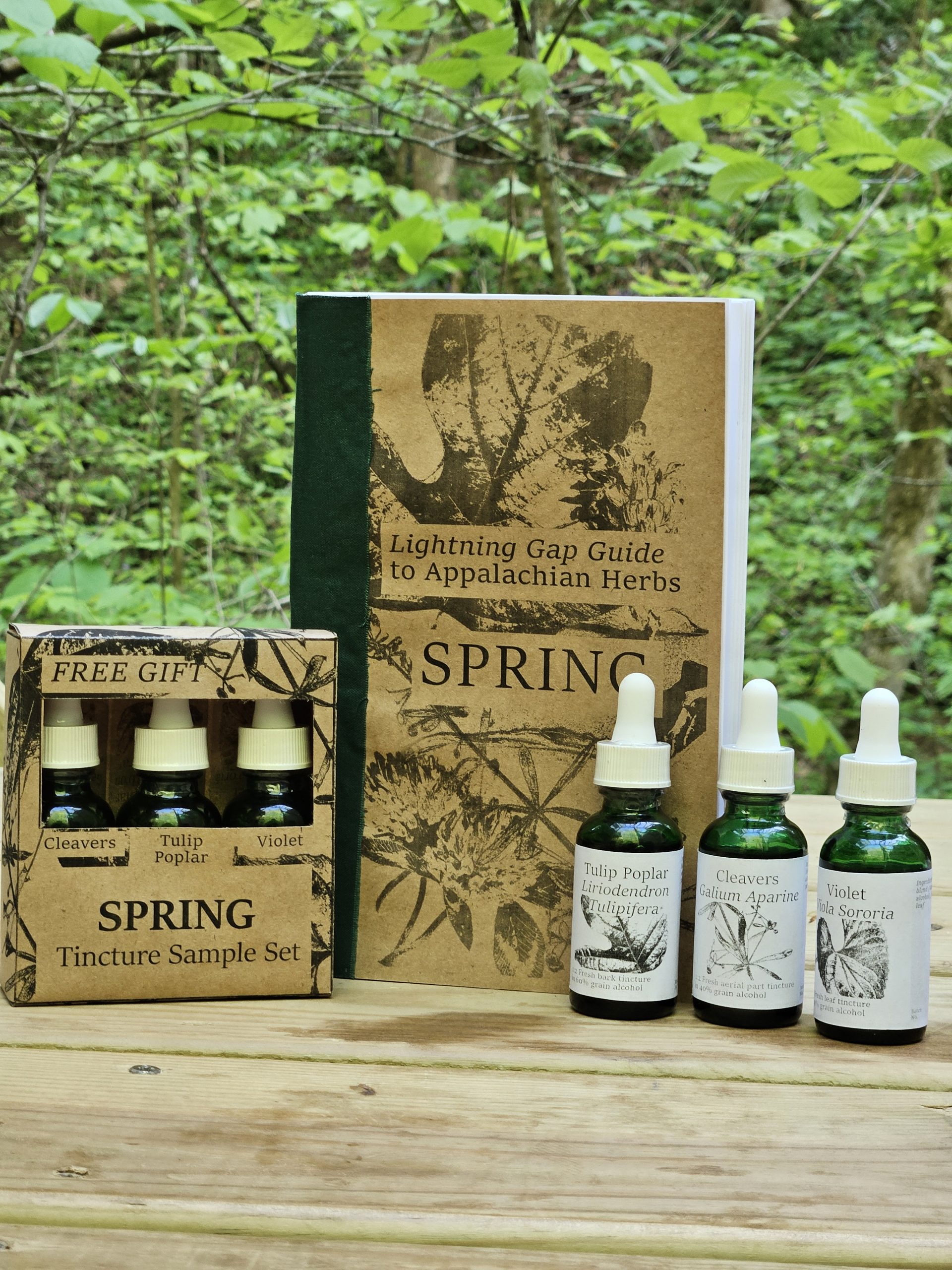 Lightning Gap Guide to Appalachian Herbs: SPRING also comes with a FREE GIFT: A set of three 1oz tinctures (Cleavers, Tulip Poplar and Violet).